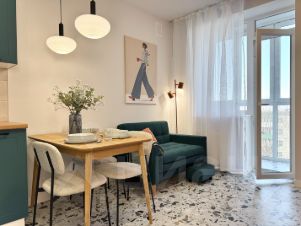 Эта однокомнатная квартира находится на 5 этаже в курортном городе Пионерский (Калининградская область). Жилой комплекс оснащен просторной детской площадкой, в подъезде имеется лифт. До широкого песчаного пляжа 20 минут прогулочного шага.