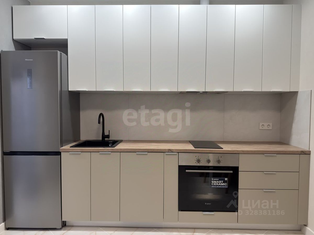 В квартире есть всё необходимое: 2 спальных места, большой шкаф-купе для хранения вещей. Бытовая техника в полном объеме: стиральная машина, холодильник, газовая плита, вытяжка и духовой шкаф. Также есть лоджия.