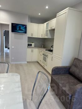 Уютная однокомнатная квартира в новом доме по адресу: Майский проезд, 19, в элитном ЖК Lake City (озеро Тихое). Очень удобная планировка, квартира на две стороны: кухня-гостиная 16 м. с кухонным уголком, диван — спальное место 1500*2000.