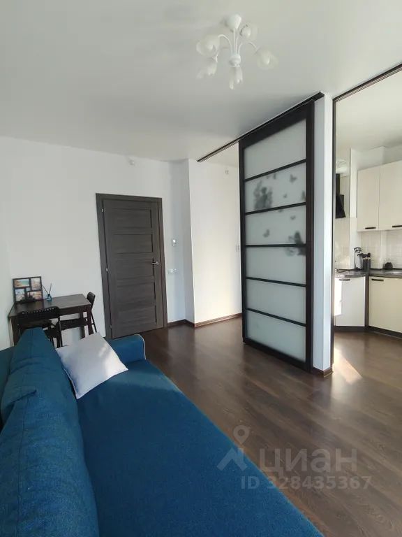 Раздвижными дверьми можно разделить зону кухни и спальни.