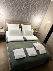 В квартире есть все для идеального проживания 2 человек, возможно размещение 4 гостей . Есть отдельная спальня и кухня с зоной для отдыха с диваном, телевизором и обеденным столом. В спальне светонепроницаемые шторы.