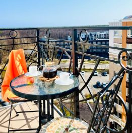 Удобная двуспальная кровать 160 см и двухместный раскладной диван, уютный балкон для романтических завтраков и лоджия для стирки и сушки белья.