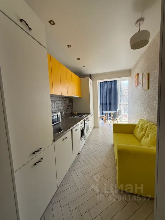 В доме на первом этаже — кофейня. Через дорогу — магазин "Алкомаркет". В 7 минутах ходьбы — магазин "Пятёрочка", аптека. В шаговой доступности — Музей янтаря, Центральный рынок, Марципановый домик, парк "Юность".