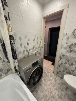 В квартире есть всё необходимое для комфортного проживания: полностью оборудованная кухня с мебелью, холодильником и стиральной машиной. В комнате также есть мебель и телевизор. Совмещённый санузел оборудован ванной.