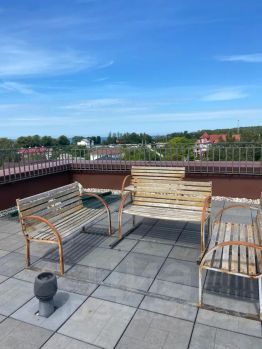 В доме эксплуатируемая крыша - так что, детям мультики, сами берем циновку, корзинку фуршетную и вперед, провожать солнышко