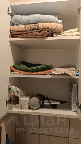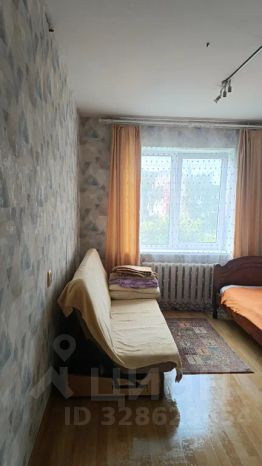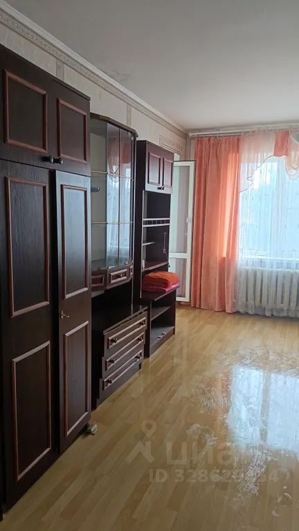 В большой комнате раскладной диван и шкафы и выход на балкон, в маленькой комнате — кровать двуспальная и односпальная и окно на центр посёлка.