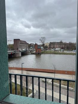 - ЖК "Рыбная деревня", вид на набережную Преголи и немецкий домик смотрителя Биржевого моста.