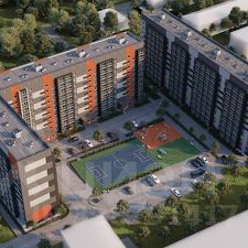 Закрытая территория жилого комплекса с видеонаблюдением.
