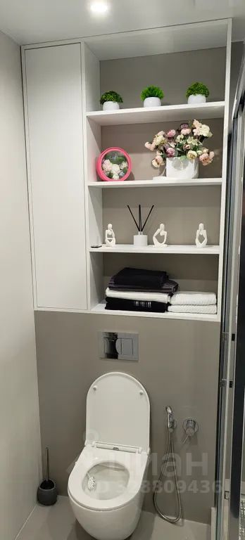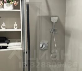 Санузел с просторной душевой, гигиеническим душем и стиральной машинкой;