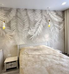 В квартире выполнен качественный евро ремонт, стены украшены стильными обоями.