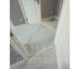Натяжные потолки, пол везде плитка, в комнате ламинат.