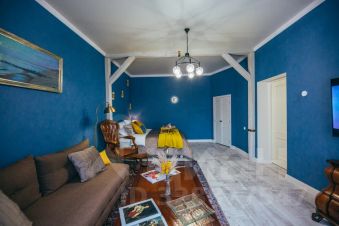 Просторнаякомната-гостинаяоборудована современнойдвуспальнойкроватьюсортопедическим матрасом, винтажной мебелью, раскладнымдиваном(дополнительноеспальноеместо для 2-х человек), небольшим, но вместительным гардеробом, Smart ТВ с большой диагональю. Шторыблэкаутобеспечаткомфортнуютемнотудляспокойно госна. ИWi-Fi на всей пощади квартиры.