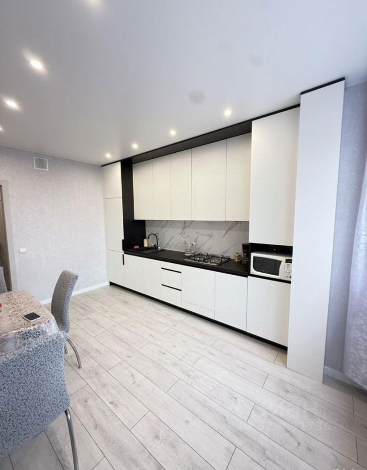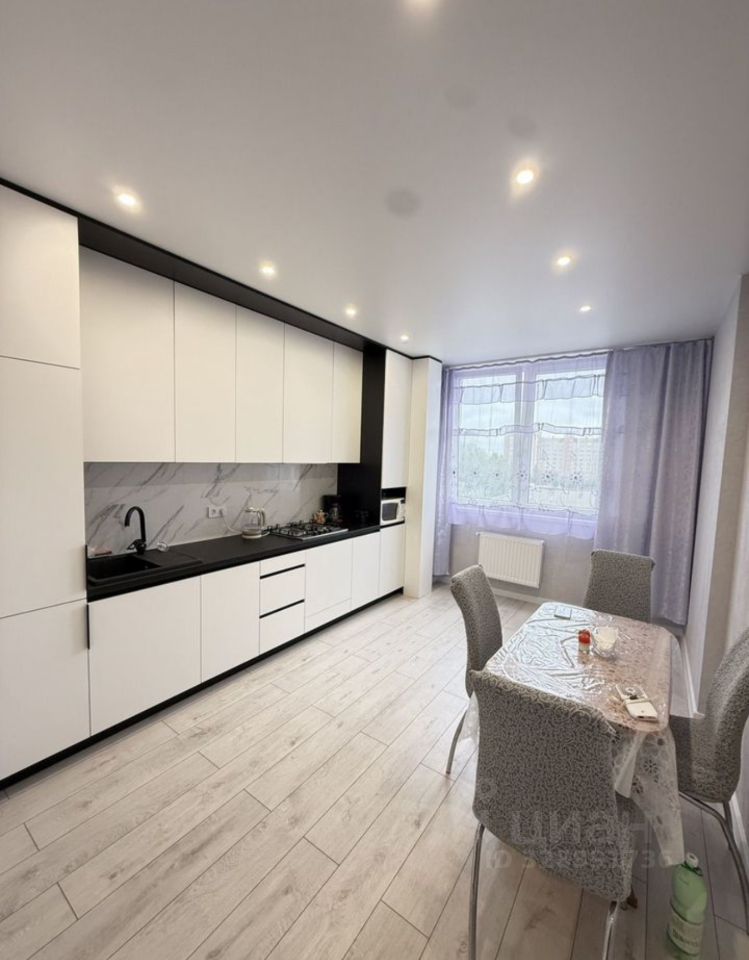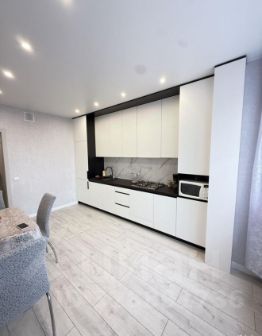 В квартире имеется все для комфортного проживания: кухонный гарнитур, холодильник, варочная поверхность, стиральная машинка, диван, шкаф для вещей, телевизор