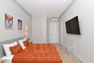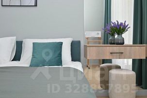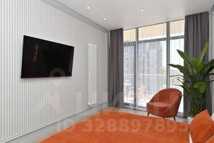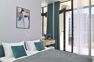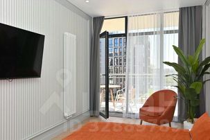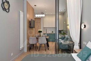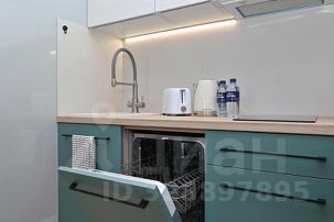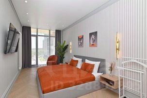 - Кухонная зона разделена на зонированную гостевую с двуспальной кроватью размера King- Size, зеркалом с полочкой и пуфиком, и кухню, включающую кухонный гарнитур, электрическую варочную поверхность, микроволновку, электрический чайник, холодильник, всю необходимая посуду на 4 персоны, дизайнерский диван, кондиционер, ЖК телевизор;