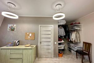 - Первая спальная комната - удобная двуспальная кровать, гардеробная, комод, рабочая зона (стол и кресло);