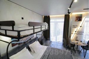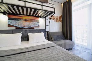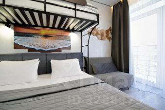 Спальная зона: двухъярусная кровать: первый ярус двуспальная кровать 160200 см, второй ярус односпальная кровать 90200 см, постельное бельё, ТВ. Выход на балкон с видом на море.