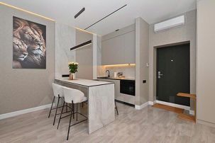 Мы рады предложить Вам современную квартиру с дизайнерским ремонтом класса Премиум в новом ЖК Атлантис на первой береговой линии западного пляжа!