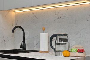 - Кухонная зона — кухонный гарнитур, электрическая варочная поверхность, микроволновка, духовой шкаф, электрический чайник, вся необходимая посуда, холодильник, ЖК телевизор, кондиционер;