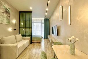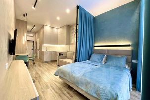 Мы рады предложить Вам современную квартиру с дизайнерским ремонтом класса Премиум в новом ЖК Атлантис с своей террасой на первой береговой линии западного пляжа!