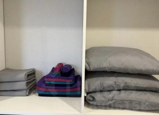 Посудомоечная машина, холодильник, микроволновая печь, духовка, стиральная машина, сушилка, утюг, гладильная доска, чистое постельное бельё, полотенца, фен и гигиенические средства.