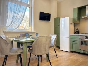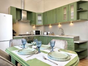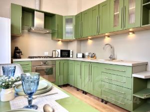 В апартаментах очень много зелёного цвета который позволяет вам расслабиться и комфортно отдохнуть от текущих проблем и забот