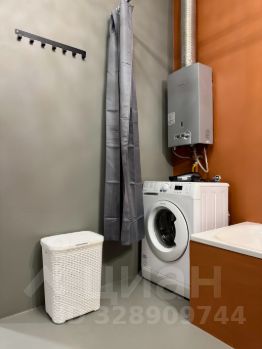 - В ванной комнате установлена большая ванна, стиральная машинка,