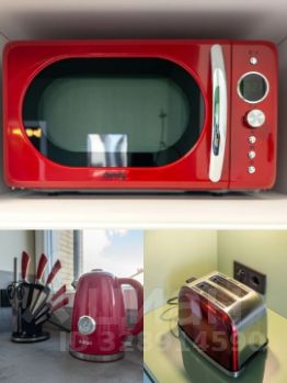 Холодильник, посудомоечная машина, тостер, капсульная кофемашина. Вся необходимая посуда. Кофе с утра за минуту. Посудомойка экономит время — важно, когда живёшь от 10 дней.