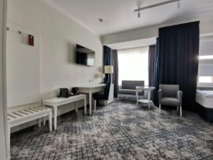 площадь номера : 25 м2, две отдельные кровати, холодильник, телефон, спутниковое ТВ, полный санузел, электронные замки, шкаф для одежды, мягкая мебель, рабочий стол, сейф