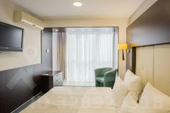 Двухкомнатный номер, разделённый на рабочую зону и зону отдыха. Состоит из спальни с двуспальной кроватью и гостиной. В гостиной зоне расположен односпальный диван, который может быть подготовлен как дополнительное место, если требуется разместить 3 гостей.