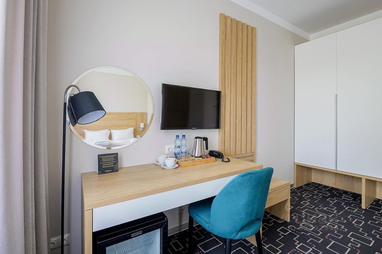 Стандартный двухместный номер с двуспальной кроватью. Номер оснащен кондиционером, телевизором, мини-холодильником, шкафом, телефоном. Собственная ванная комната оборудована душем, бесплатными туалетно-косметическими принадлежностями, феном, тапочками и халатом.