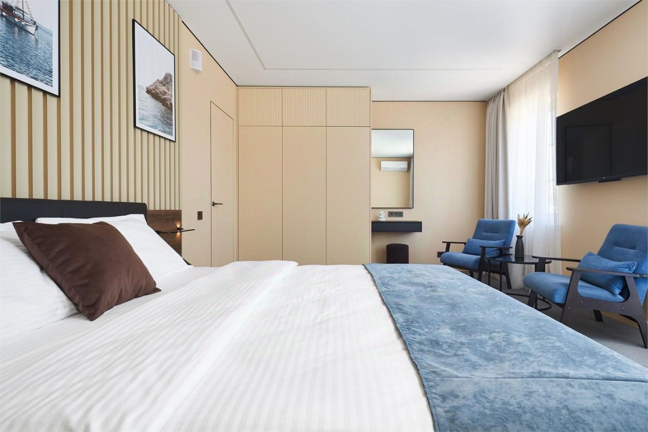 Семейный апартамент с размещением до четырех человек. Двуспальная кровать, 2 кресла-кровати, ТВ, Wi-Fi, кондиционер.
