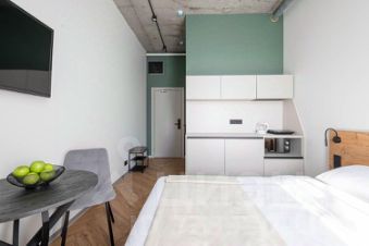 Мы рады предложить вам уютные номера площадью от 15 кв. м., идеально подходящие для комфортного проживания. Каждая студия оборудована ванной комнатой и обеденной зоной, что создаёт атмосферу домашнего уюта.