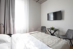 В наших номерах вы сможете насладиться просмотром программ на современном телевизоре со Smart TV, а также воспользоваться высокоскоростным Wi-Fi и сейфом для ваших ценностей. В ванной комнате вас ждут фен и набор косметических принадлежностей, чтобы ваше пребывание было максимально комфортным и приятным.