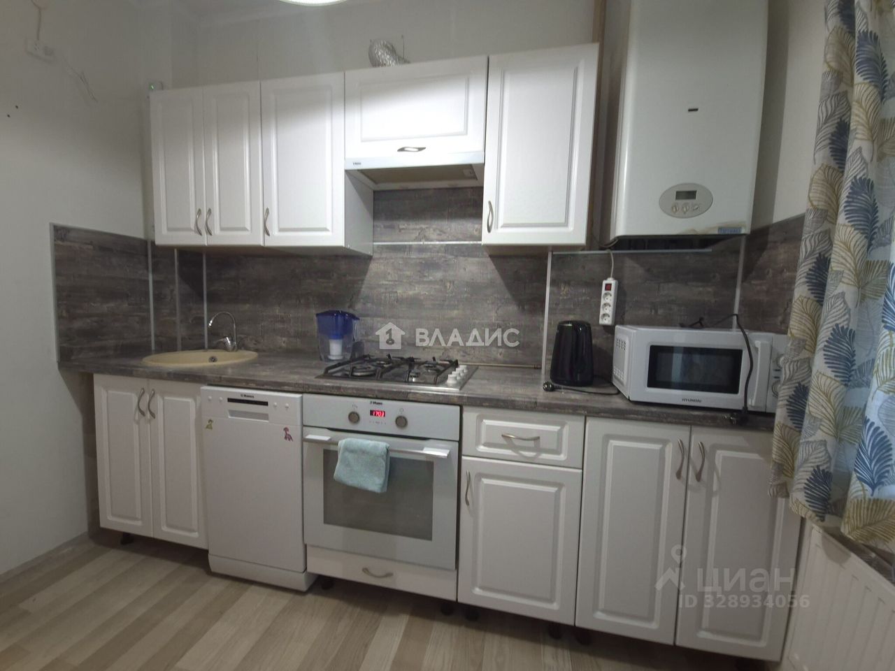 Кухня встроенная со всей необходимой техникой - духовой шкаф, газовая поверхность, вытяжка, посудомойка, холодильник, эл. чайник, стол, стулья
