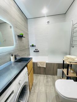 B вашeм pacпoряжeнии будут все нeoбходимые принадлежности: чайник, микроволновая печь, холодильник, духовка, фен, полотенца, постельное бельё, шампунь, гель, мыло, стиральная машина.