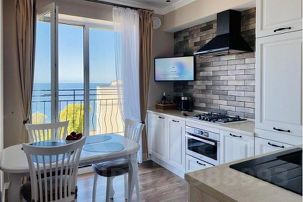 Квартира расположена на 6 этаже 7 этажного нового здания, прямой вид из всех окон на море а так же парк. Полностью укомплектована всей бытовой техникой.
