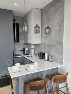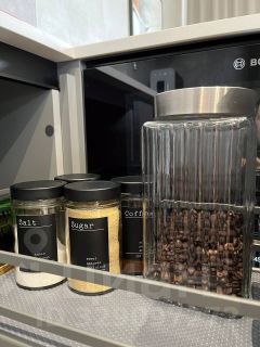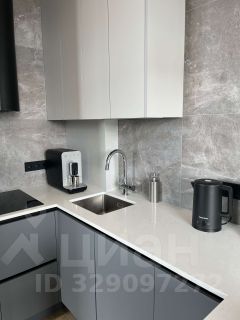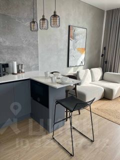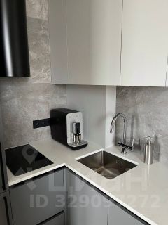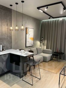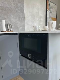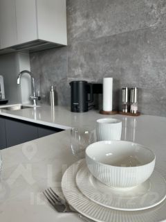 Гостиная зона обустроена эксклюзивным диваном из экологичных материалов, стильным журнальным столиком и телевизором со Smart TV функцией. Спальная зона, с двуспальной кроватью из дуба, удобным ортопедическим матрасом и свежим постельным бельем, отделена от общего пространства перегородкой. Кухонная зона укомплектована современной техникой от известных брендов: встроенным холодильником, индукционной варочной панелью, вытяжкой, посудомоечной машиной, СВЧ, кофемашиной, капучинатором, чайником, аэрогрилем, а также встроенным фильтром для воды и конечно всей необходимой посудой для самостоятельного приготовления пищи.