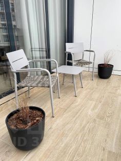 Очень светлая студия с продуманной эргономикой и системой освещения. Панорамные окна выходят на большой открытый балкон с боковым видом на море. На балконе расположены кресла со столиком, где приятно выпить утренний кофе.