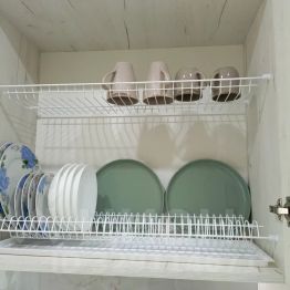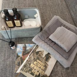 Бытовая техника: газовая поверхность, духовой шкаф, микроволновая печь, холодильник, электрочайник, стиральная машина, телевизор, утюг. Также для вашего удобства имеется гладильная доска и дополнительная сушка для белья.