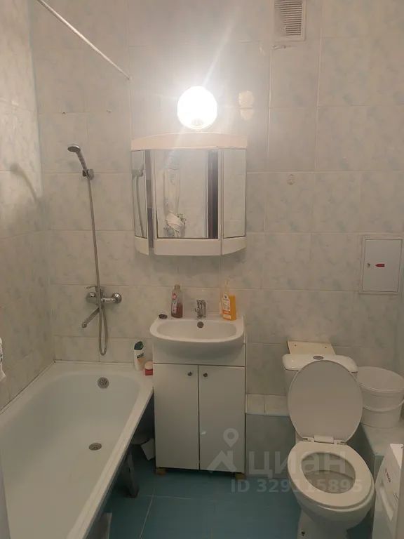 В прихожей установлен вместительный шкаф-купе, который создает комфортное пространство для хранения вещей. Ванная комната оснащена всем необходимым, включая стиральную машину.