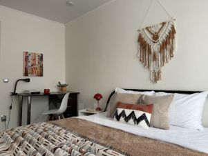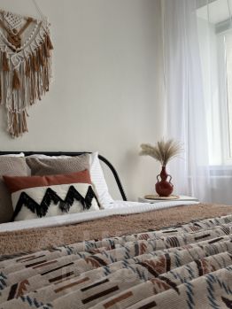 атмосферная спальня с большой удобной кроватью, ортопедическим матрасом. Мы приготовили для вас хрустящее постельное белье, уютные пледы.