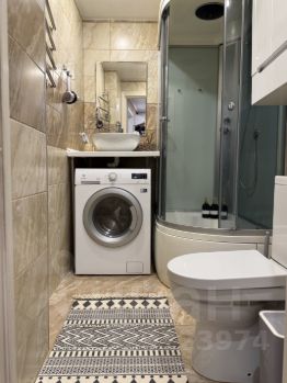 санузел с душевой, стиральной машинкой (встроена сразу функция сушки) и разными необходимыми мелочами: