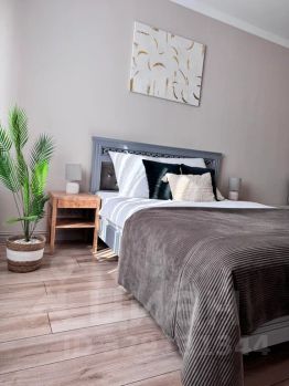 -Спальня: тихая комната с удобной двуспальной кроватью, с удобным диваном для сна на одного человека, вместительным шкафом и телевизором.