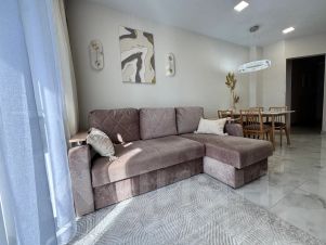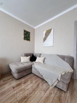 -Общая зона: большая гостиная-столовая, совмещенная с кухней. Есть всё для приготовления еды и комфортного отдыха. Удобный диван для двух человек, для комфортного сна.