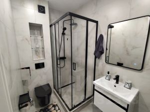 Новая и современная квартира в удобной локации встретит вас полностью оборудованной и укомплектованной всем необходимым! С комфортом могут разместиться 4 гостя.
