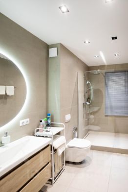 Квартира состоит из трех уютных спален и огромной гостиной, совмещенной с современной кухней. Здесь вы найдете два санузла, выполненных в современном скандинавском стиле с морской тематикой. Удобные душевые кабины. Везде установлена качественная сантехника и предусмотрены все необходимые удобства.