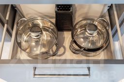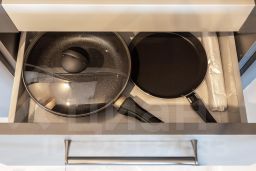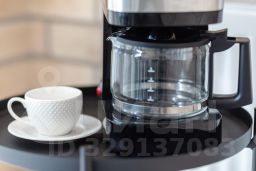 Кухня оборудована всем необходимым: плита, холодильник, микроволновая печь, электрический чайник, кофеварка. В наличии посуда и базовые продукты — чай, кофе, сахар и соль.
