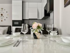 Квартира — в новом доме в зелёном районе. До пляжа — 15 минут спокойным шагом по красивым улочкам. Рядом — велодорожка вдоль моря до Зеленоградска и Светлогорска, а если захочется в Калининград — вокзал в километре. За домом — парк, в двух шагах — супермаркет, вокруг — бесплатная парковка. И главное — очень тихо