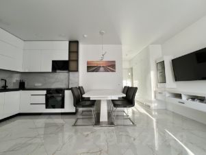 Просторная кухня с кофеваркой и фильтром для воды, тропический душ, стиральная машина, фен, ручной отпариватель, доска и сушилка. Для вечера — книги, уютный балкон, телевизор со Smart TV и быстрый Wi-Fi, а также игровая приставка Game Stick (1000+ игр). Уже предусмотрены все необходимые косметические мелочи и полотенца для пляжа. Всё, как дома, только без лишних забот.