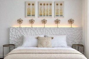 Интерьер выполнен в светлых благородных тонах с золотыми акцентами, текстурами и продуманным декором. Атмосфера уюта и приватности сочетается с уровнем комфорта отеля.